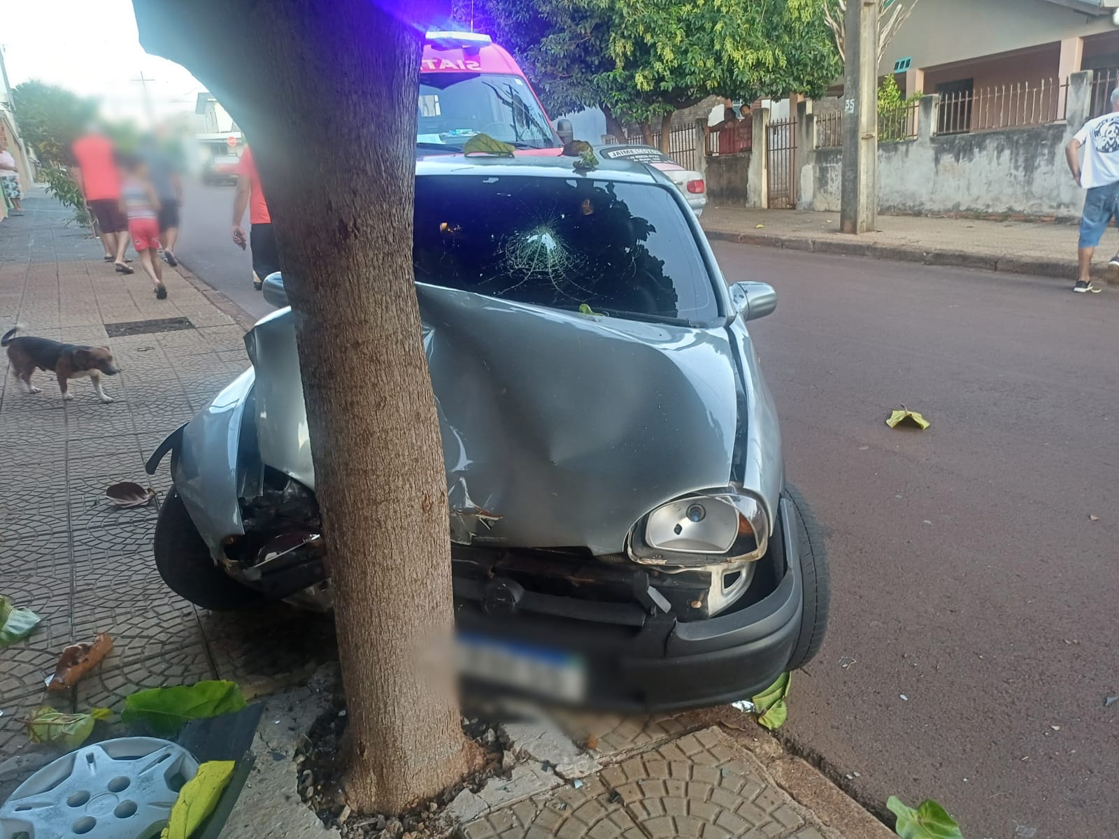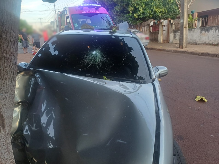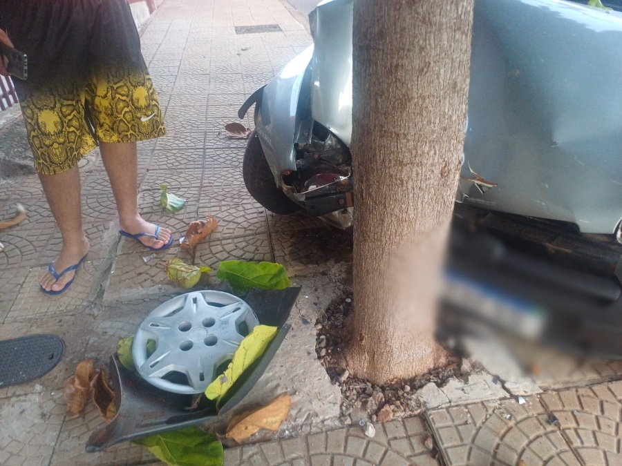 Colisão com árvore destrói parte frontal de veículo na Vila Boa Esperança