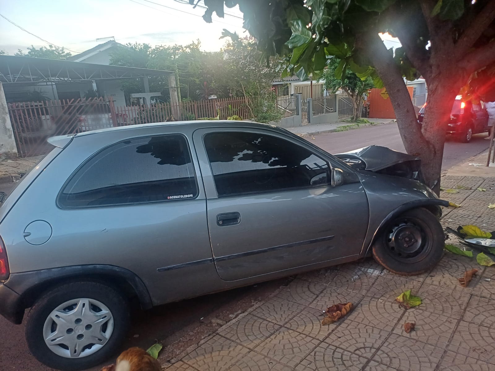 Um veículo GM Corsa, de cor cinza, ficou destruído, em um acidente de trânsito registrado por volta das 06h25, do domingo, 30, na Rua Tomaz Gonzaga, na Vila Boa Esperança, em Toledo.