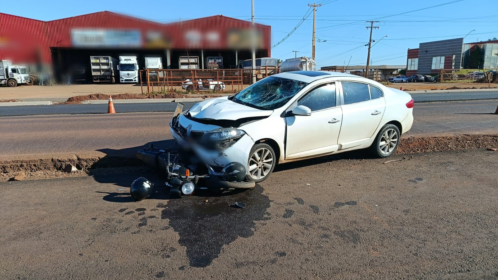 Colisão entre carro e moto deixa duas pessoas feridas na Avenida Egydio Jaronymo Munaretto
