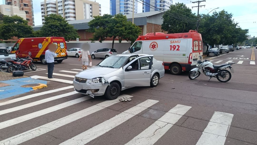Um acidente de trânsito envolvendo um automóvel e uma motocicleta mobilizou equipes do Corpo de Bombeiros, do Serviço de Atendimento Móvel de Urgência (Samu) e da Guarda Municipal (GM) na tarde desta terça-feira (14), na região central de Toledo. Apesar do impacto, o motociclista recusou encaminhamento hospitalar após ser avaliado no local.