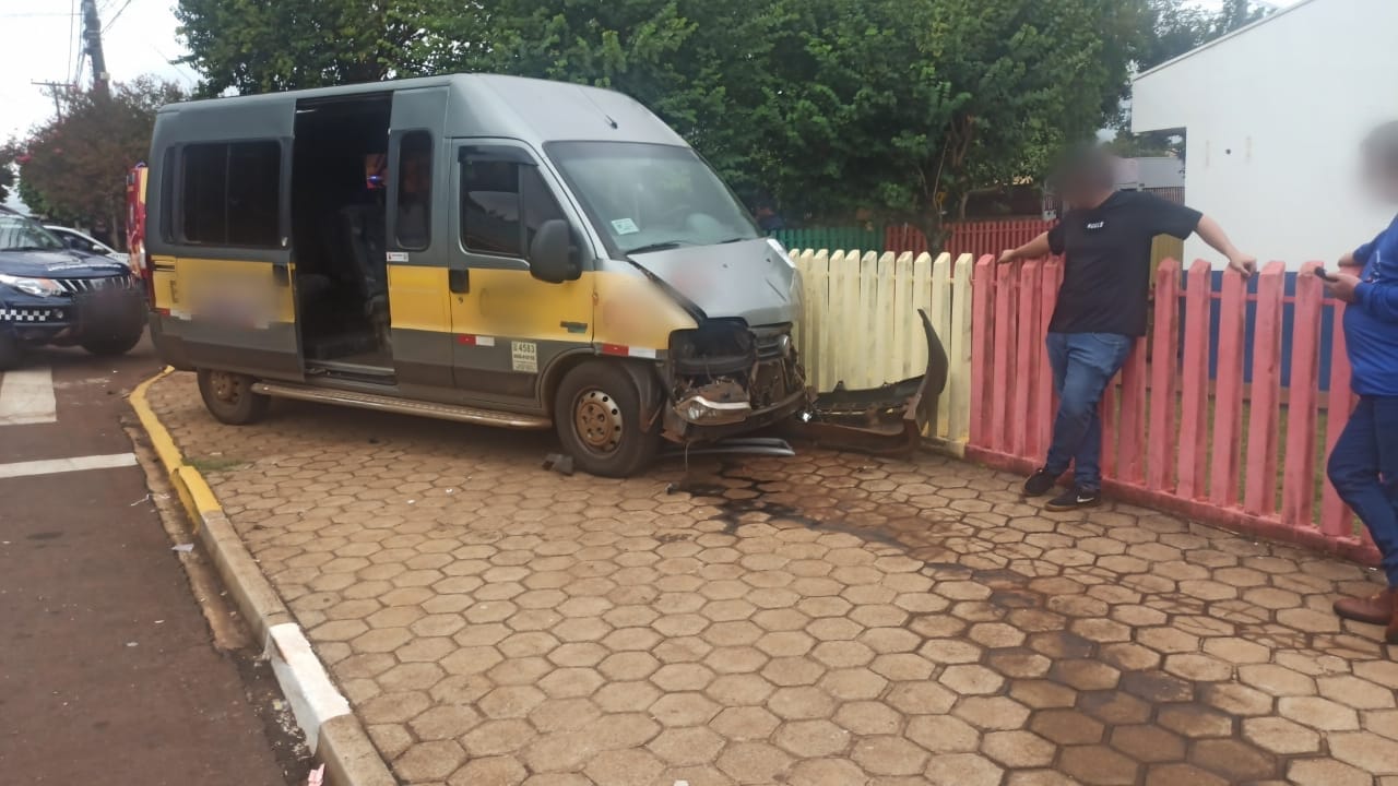 Colisão entre carro e van escolar deixa feridos em frente a escola, em Toledo