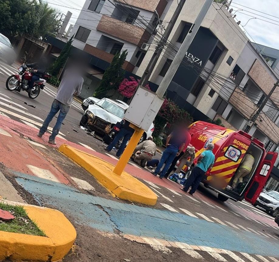 Uma jovem de 20 anos precisou ser levada ao hospital por volta das 12h00 desta segunda-feira (08) após um acidente envolvendo dois carros e uma motocicleta no Centro de Toledo. A colisão ocorreu no cruzamento entre a Avenida Parigot de Souza e a Rua Almirante Barroso.