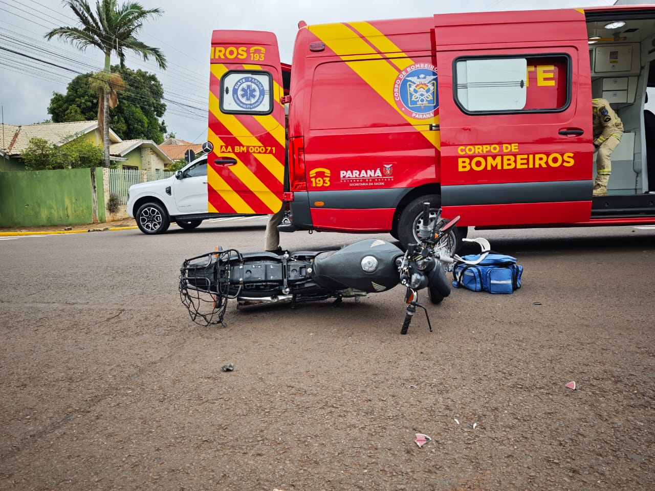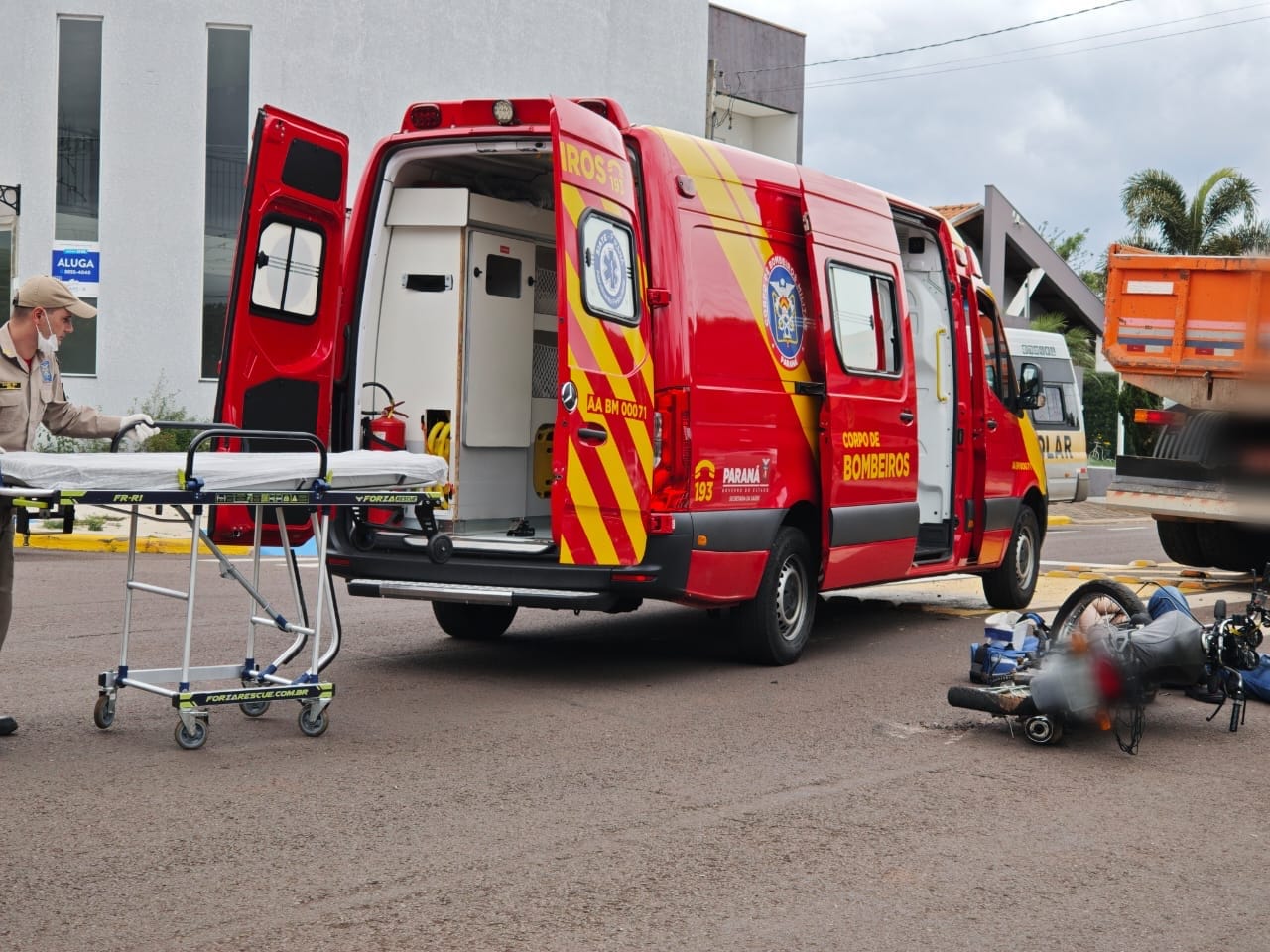 Por volta das 14h40 desta quinta-feira (13) uma motocicleta Honda CG Fan 125 e um caminhão colidiram no cruzamento da Rua Almirante Barroso com a Rua XV de Novembro, na região central de Toledo. O acidente ocorreu quando o caminhão trafegava pela Rua Almirante Barroso, via preferencial, e a moto seguia pela Rua XV de Novembro. A motocicleta acabou avançando o cruzamento, atingindo a lateral do caminhão.
