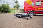 Colisão entre moto e caminhão deixa casal ferido no Centro de Toledo