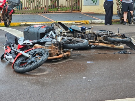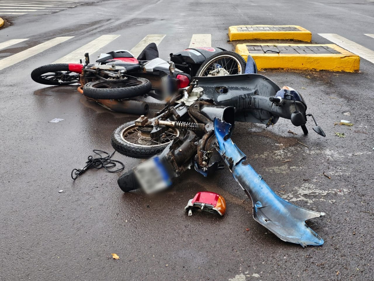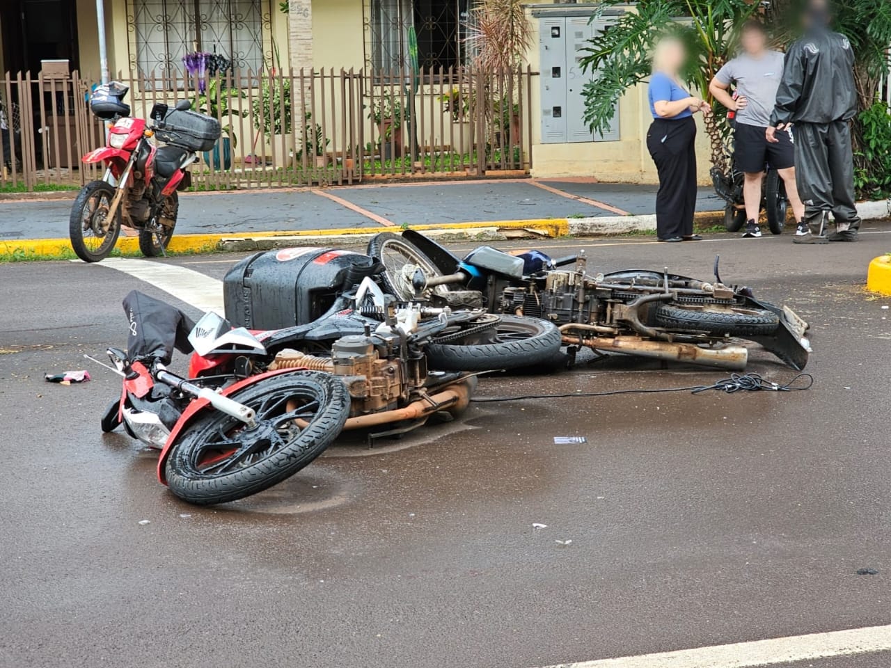 Uma colisão entre duas motocicletas foi registrada no meio da tarde desta quarta-feira (19), no cruzamento da Rua Guaíra com a Rua da Faculdade, no Jardim La Salle, em Toledo. A colisão envolveu uma Honda CG e uma Honda Biz 100.