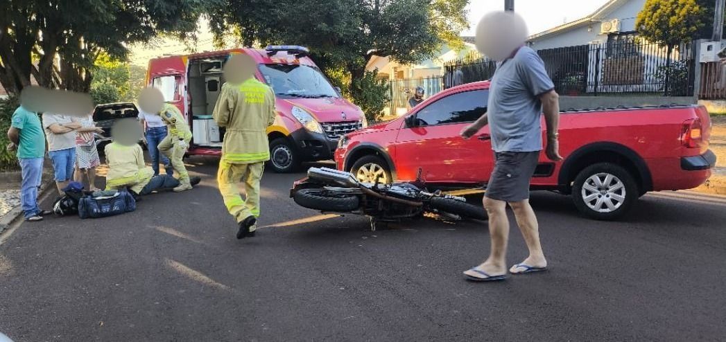 Um motociclista de 29 anos ficou ferido após um acidente envolvendo uma picape e uma moto na manhã desta sexta-feira (24), no Jardim Panorama, em Toledo.