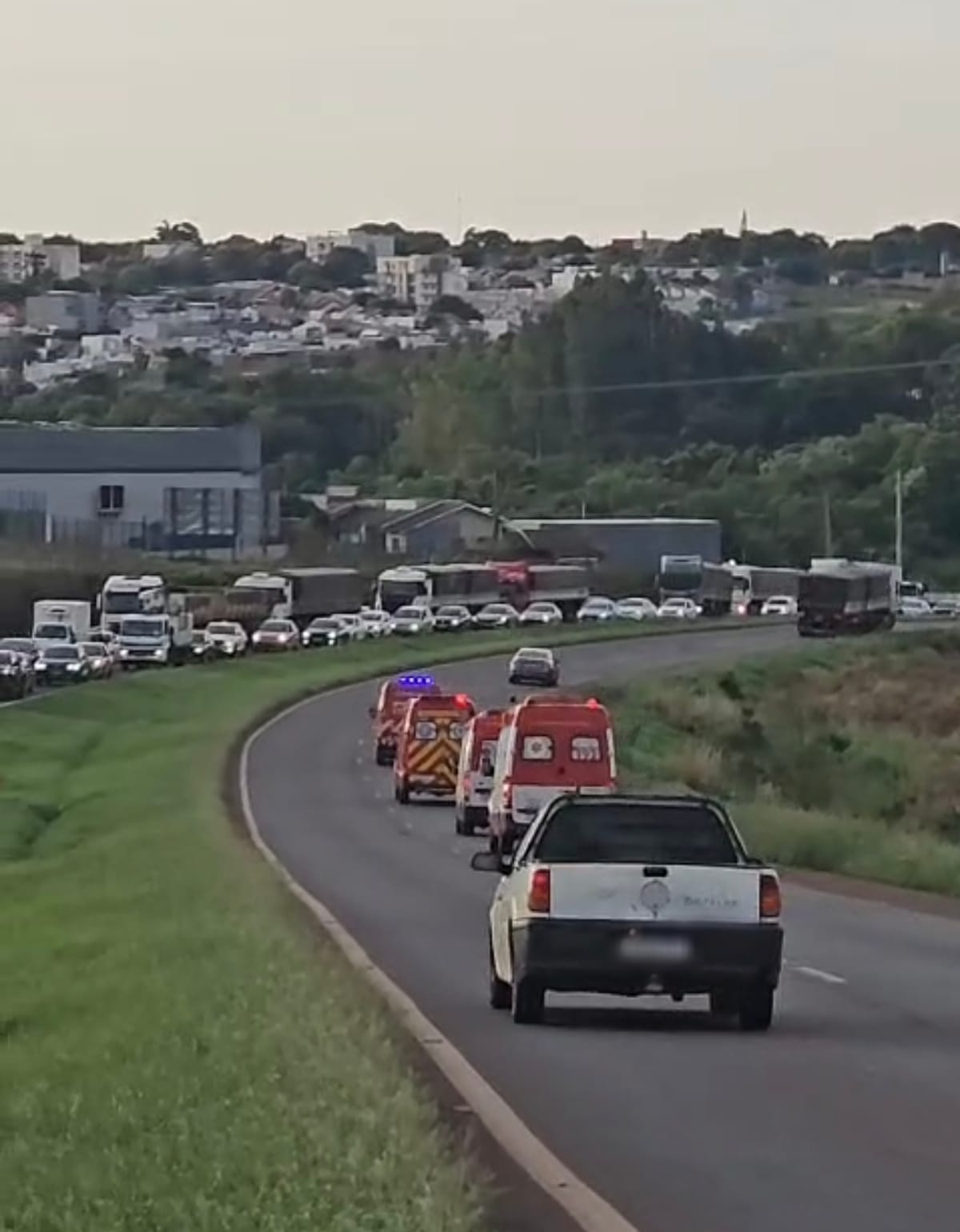 A Polícia Rodoviária Federal (PRF) foi acionada para controlar o tráfego e registrar a ocorrência. O trânsito está lento no sentido de Toledo a Cascavel.