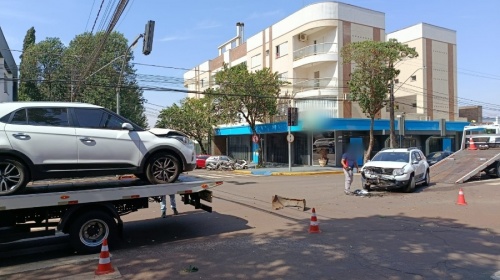 Um acidente de trânsito provocou a interrupção parcial do fluxo de veículos em um dos cruzamentos mais movimentados da região central de Toledo no final da manhã desta terça-feira (19). A colisão envolveu dois automóveis, um Chevrolet Duster e um Hyundai Creta, e causou danos significativos às partes frontais de ambos, embora ninguém tenha se ferido.