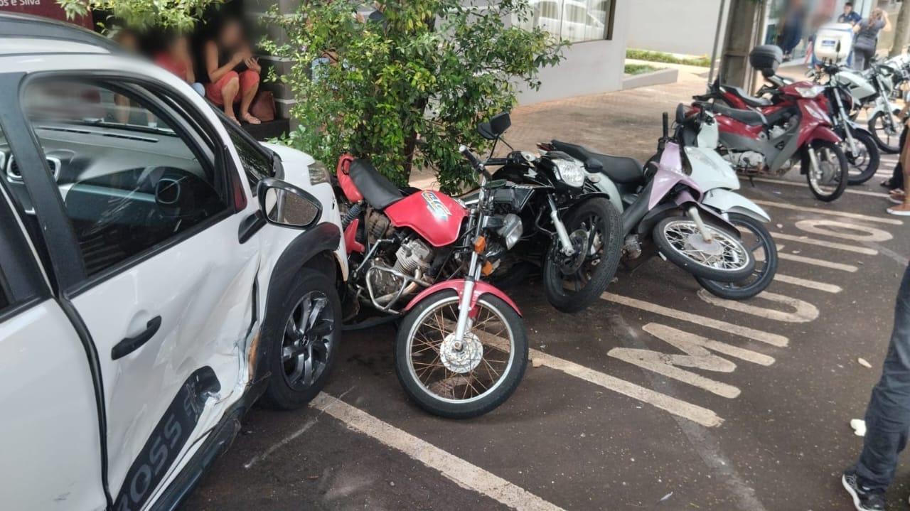 O Fusion colidiu do lado do banco do passageiro, fazendo com que o Aircross subisse na calçada. O impacto derrubou uma placa e atingiu motocicletas que estavam estacionadas. Três motos foram derrubadas e ficaram apoiadas em uma quarta.