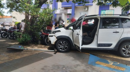 Colisão na Rua Piratini derruba placa e atinge motocicletas estacionadas