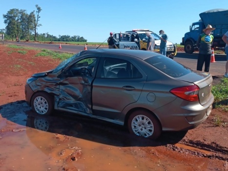 De acordo com informações apuradas no local, o Ford Ka seguia de Nova Santa Rosa-PR em direção a Maripá e, ao tentar cruzar a via no trevo, foi atingido pelo caminhão, que transitava pela PR-182 no sentido de Palotina a Toledo. Com o impacto da batida, o Ford Ka foi lançado para fora da pista.