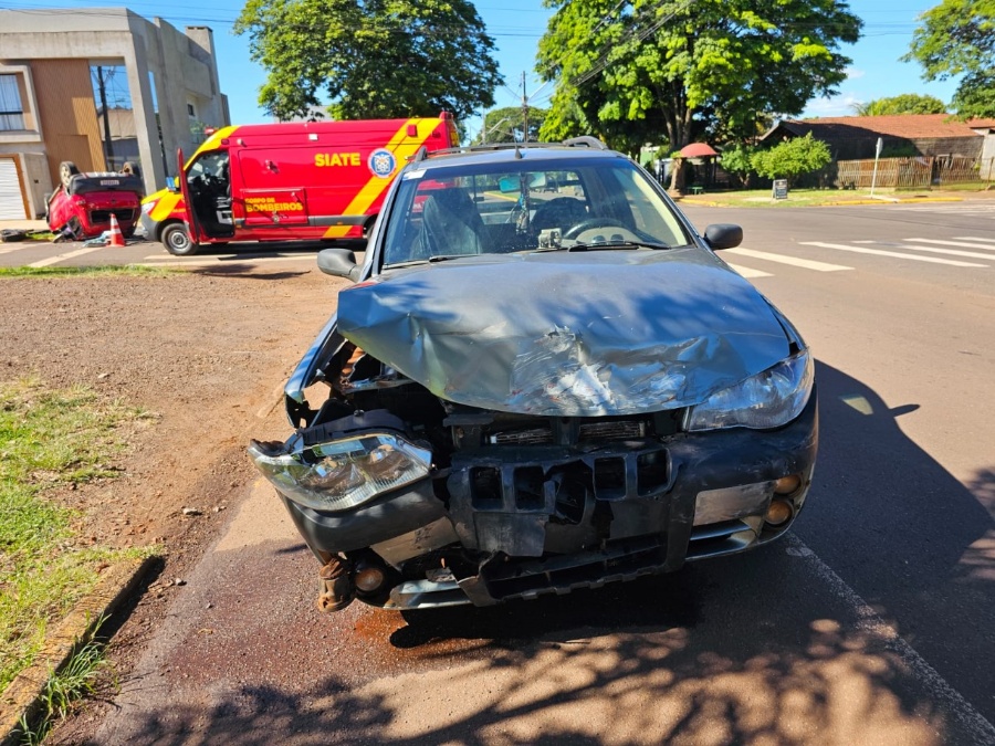 Um capotamento foi registrado no meio da tarde desta terça-feira (17), no cruzamento das ruas Rio Grande do Sul e Vítor Hugo, no Jardim Porto Alegre, em Toledo. O sinistro envolveu um VW CrossFox, de cor vermelha e uma Fiat Strada, de cor cinza.