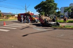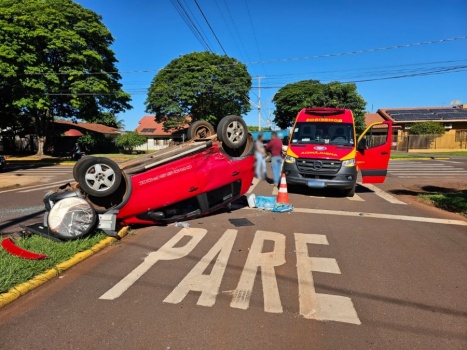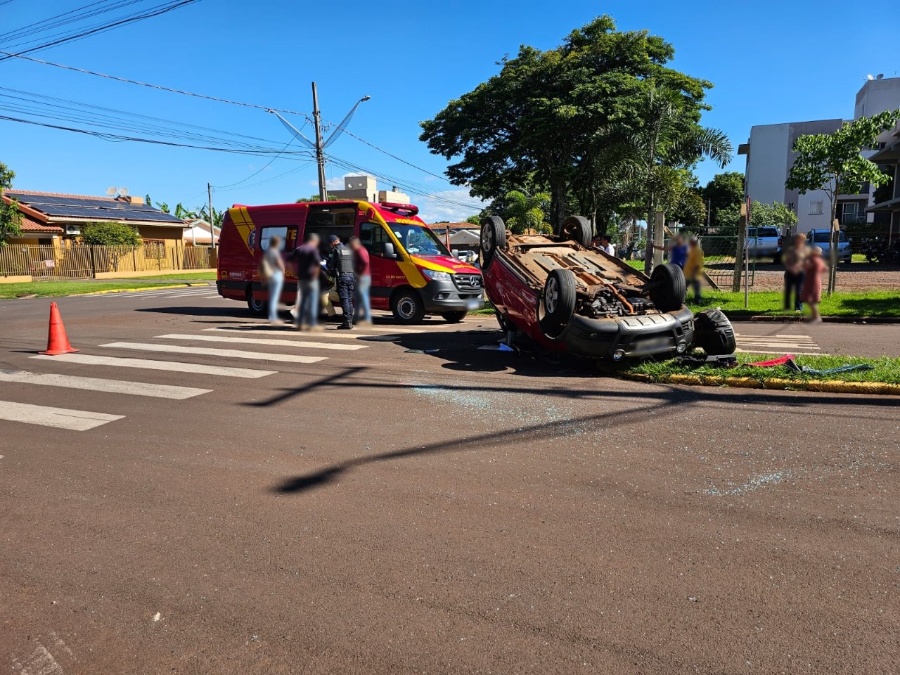 Colisão resulta em capotamento no Jardim Porto Alegre