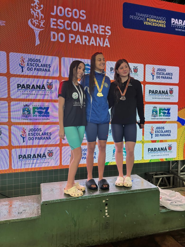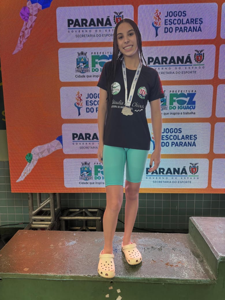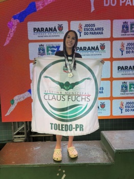 A fase final dos Jogos Escolares do Paraná (Jeps), na Categoria A de 15 a 17 anos, realizada em Foz do Iguaçu, encerrou-se com resultados expressivos para os atletas da natação de Toledo. O grande destaque da delegação foi Isabela Romancini, que, em sua estreia na categoria, conquistou duas medalhas: prata nos 50 metros costas e bronze nos 100 metros costas.