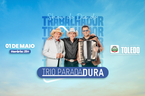 O ponto alto da programação será o Show do Trabalhador. Nome bastante conhecido do público que acompanha música sertaneja, o Trio Parada Dura comandará a festa na próxima segunda-feira (1º/5), a partir das 21h, no palco que será montado no Alto da Avenida Maripá, na região do Europa/América. Durante o Show do Trabalhador, Leonito (1ª voz e violão), Creone (2ª voz e violão) e Xonadão (sanfona) apresentarão grandes sucessos como “As andorinhas”, “Telefone mudo”, “Barco de papel”, “Blusa vermelha”, “Avião das nove”, entre outras canções que são lembradas até hoje por muita gente. O trio integra a formação mais recente de um trio que tem feito a história da música sertaneja nos últimos 50 anos.