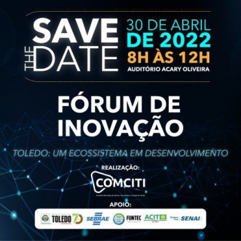 O Fórum de Inovação – Toledo: um ecossistema em desenvolvimento será realizado dia 30 de abril das 8h às 12h no auditório da Prefeitura de Toledo.