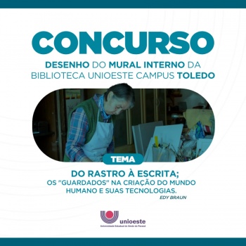 Estão abertas as inscrições para o concurso “Do rastro à escrita: os 'guardados' na criação do mundo humano e suas tecnologias”, organizado pela professora e artista Edy Braun em parceria com a Universidade Estadual do Oeste do Paraná - Unioeste, campus de Toledo. O concurso é aberto ao público geral e visa selecionar um desenho que será pintado na parede do mural interno da biblioteca da Unioeste. As inscrições são aceitas até o dia 21 de outubro, e as obras devem ser entregues no formato A4, coloridas ou não, até as 21 horas no setor de protocolo da instituição.