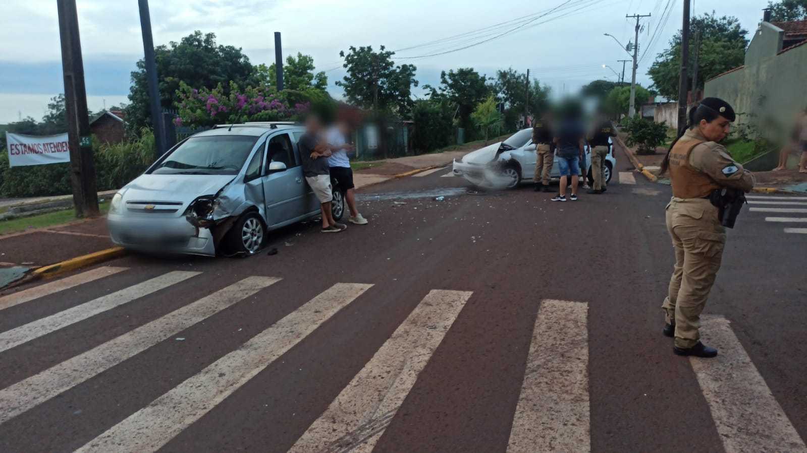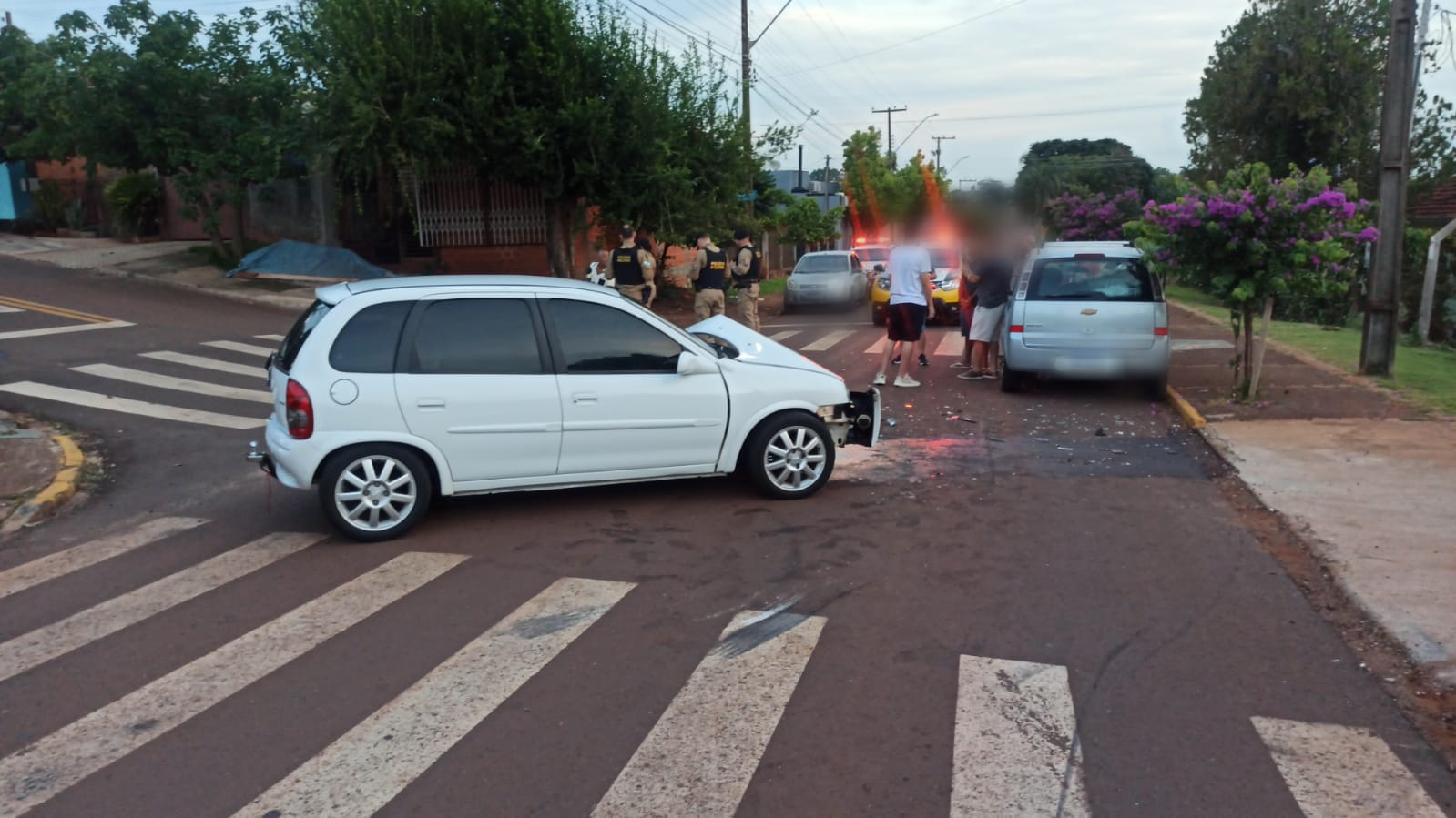 Um acidente de trânsito envolvendo um GM Meriva e um GM Corsa foi registrado no final da tarde deste sábado (30), no cruzamento das ruas Ricardo Galante e Albino Scariot, no Centro de Toledo.
