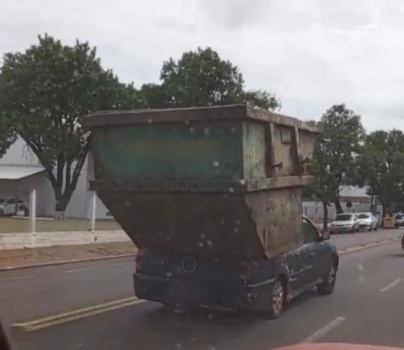 Um flagrante de transporte irregular de carga foi registrado na manhã desta terça-feira, dia 01º de abril, no Centro de Toledo. Uma Volkswagen Saveiro foi vista circulando pela Rua São João, próximo ao cruzamento da Avenida Parigot de Souza, com uma caçamba de entulho sobre a carroceria, prática que configura infração grave segundo o Código de Trânsito Brasileiro (CTB).