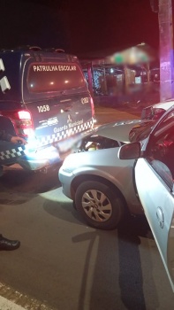 A colisão causou danos de média monta no automóvel da condutora e danos leves na viatura da Guarda Municipal.