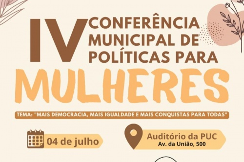 A IV Conferência Municipal de Políticas para Mulheres está chegando. O evento será realizado no dia 04 de julho, das 08h00 às 12h00 e das 13h30 às 17h00, no auditório da Pontifícia Universidade Católica do Paraná (PUC-PR), Campus Toledo. A quarta edição da conferência conta com um tema mais que especial para as mulheres do município: “Mais democracia, mais igualdade e mais conquistas para todas”.