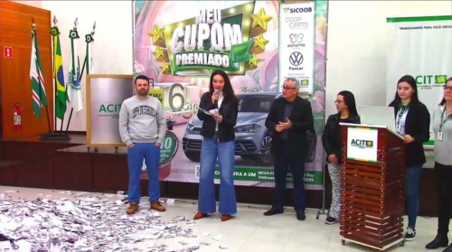 A campanha Meu Cupom Premiado é uma realização da ACIT com apoio dos parceiros Cartões Coopcerto, Sicoob Meridional, Shopping Panambi e Volkswagen Fancar.
