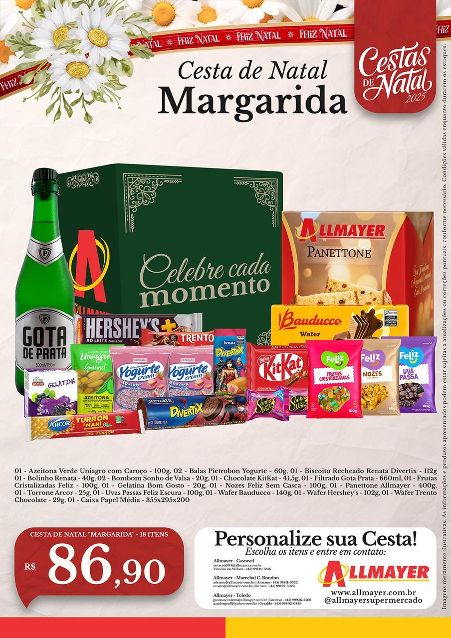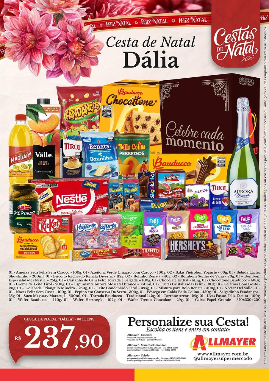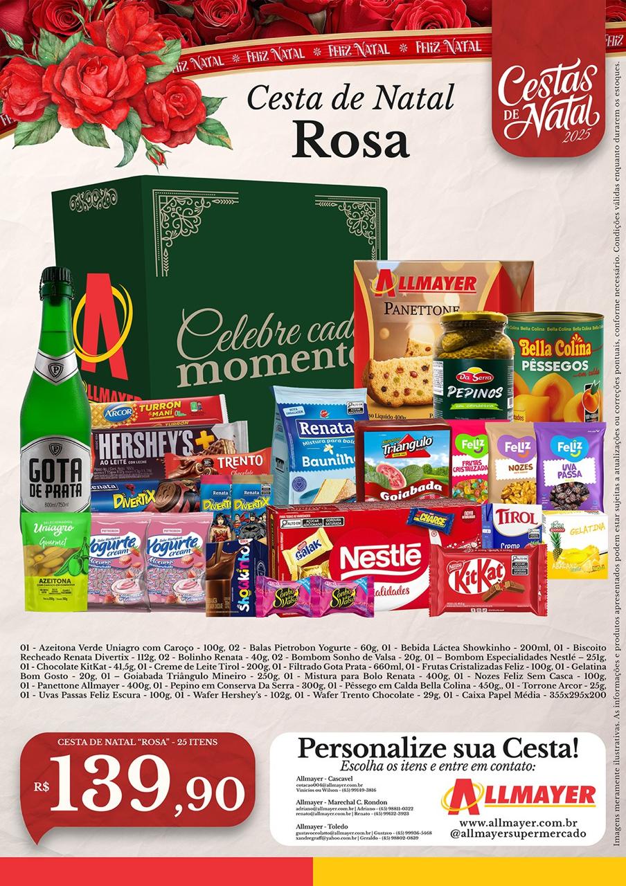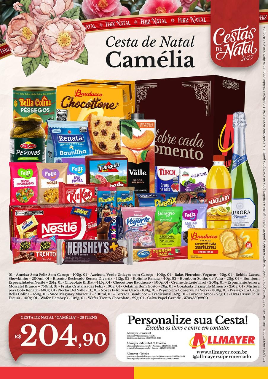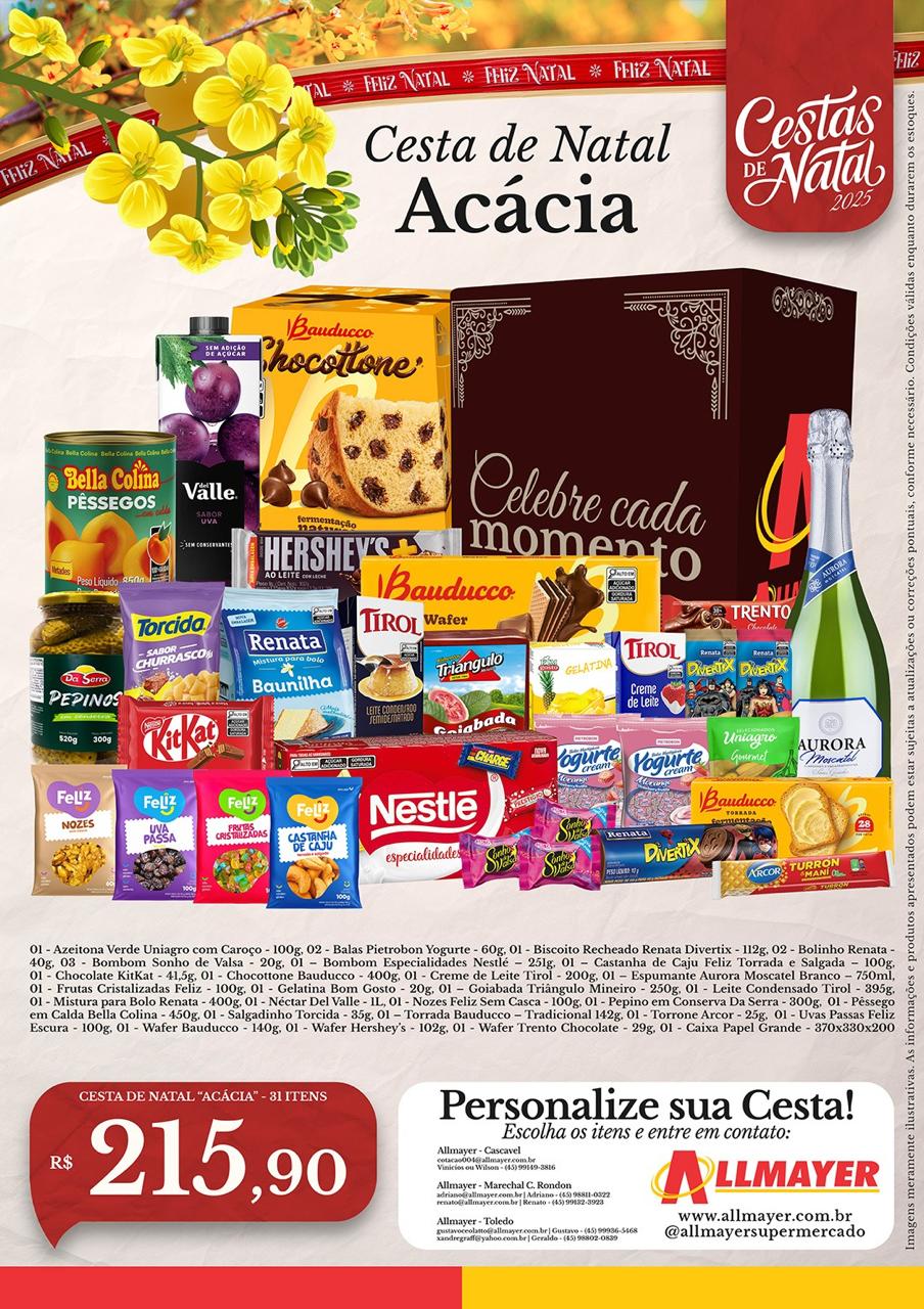 O Allmayer Supermercados de Toledo preparou cestas de Natal prontinhas para quem deseja presentear com carinho e praticidade. São várias opções para todos os gostos e orçamentos, ideais para tornar o fim de ano ainda mais especial.