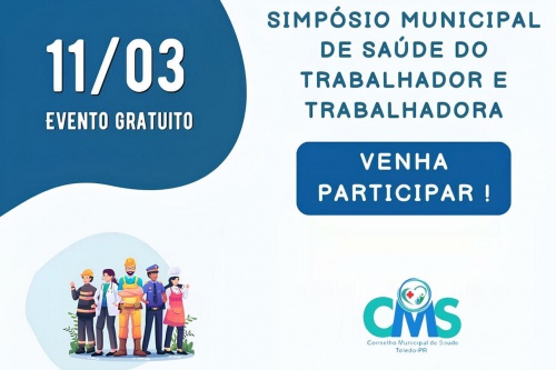 Na próxima terça-feira (11), o Conselho Municipal de Saúde de Toledo estará realizando o “Simpósio Municipal de Saúde do Trabalhador e Trabalhadora”. O evento será realizado no Auditório Acary de Oliveira, anexo ao Paço Municipal Alcides Donin, com o início previsto para às 8h.