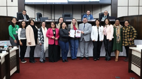 O discurso da presidente evidencia a urgência de políticas públicas mais efetivas no combate à violência contra a mulher. Em 2024, 1.492 feminicídios foram registrados no ano passado – em média, quatro mulheres foram assassinadas por dia. A Polícia Militar recebeu 1.067.556 denúncias de violência doméstica no ano passado. Solange também informou que, entre as cidades brasileiras com mais de 100 mil habitantes, Toledo ocupou a 24ª posição na lista de casos registrados de estupro e estupro de vulneráveis. “É um dado que nos causa profunda preocupação. Exige medidas urgentes de prevenção, proteção e responsabilização dos agressores. Esses indicadores mostram que, embora tenha avançado nas legislações e na criação de instrumentos de enfrentamento, ainda estamos diante de um cenário alarmante que exige ações conjuntas entre poder público, sociedade civil e instituições de justiça para salvar vidas e garantir dignidade para as mulheres”, concluiu. Após sua fala, Solange entregou as propostas aprovadas na IV Conferência Municipal de Políticas para Mulheres aos parlamentares.