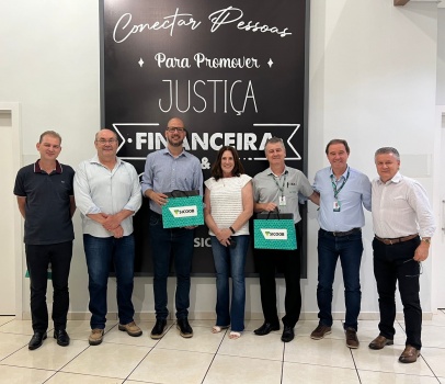 No destaque: o vice-presidente de Finanças da ACIT, Ademir Kopeginski, o Presidente do Conselho de Administração do Sicoob, Sonir Dalla Barba, o presidente da ACIT, Cristiano Dall’Oglio da Rocha, a Conselheira da Cooperativa, Solange Pinzon de Carvalho Martins, o gerente geral da ACIT, Marcel Sarturi, o Diretor Superintendente do Sicoob, Gilberto Albarello e o Diretor de Negócio da Cooperativa Sicoob, Cesar Antonio Backes.