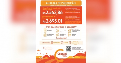 A Copacol, uma das principais cooperativas do setor agroindustrial do Brasil, está recrutando Auxiliares de Produção para a sua unidade em Toledo, especializada na indústria de peixes.