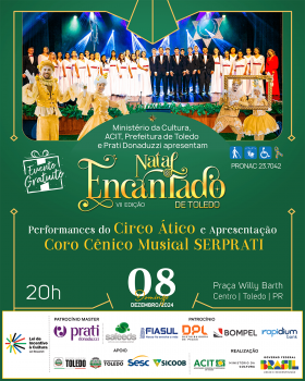 Dando continuidade à programação cultural da VII edição do Natal Encantado de Toledo, o Coro Serprati se apresenta no domingo, dia 8 de dezembro às 20h na Praça Willy Barth.