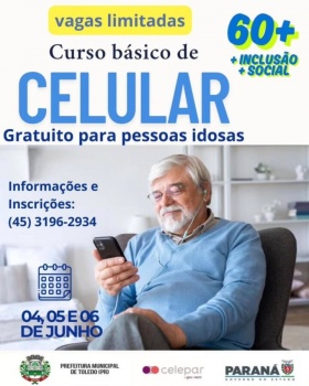 A Prefeitura de Toledo realiza, entre os dias 04 e 06 de junho, mais uma edição do curso “Celular Básico 60+”, voltado exclusivamente para pessoas com 60 anos ou mais. A iniciativa é gratuita e tem como objetivo promover a inclusão digital da população idosa do município.