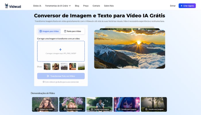 Dê vida às fotos: Descubra a ferramenta de conversão de imagem em vídeo com IA de Vidwud
