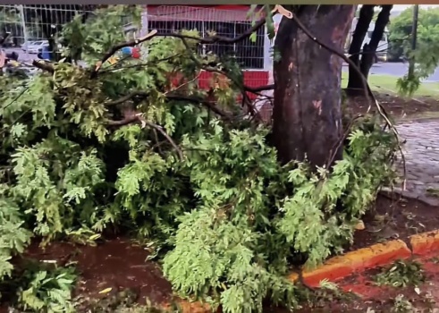 Defesa Civil desobstrui via após queda de árvore na Avenida Senador Attílio Fontana