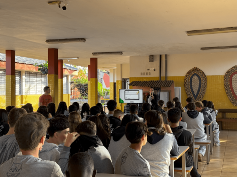 O departamento de Estágios e Currículos da Associação Comercial e Empresarial de Toledo (ACIT) promoveu na manhã de terça-feira (27), uma palestra com o tema “Prepara-se para o mercado de trabalho”, ministrada pela coordenadora do setor Danielle Fontana. Mais de 60 estudantes do Ensino Médio Técnico em Desenvolvimento de Sistemas do Colégio Estadual Jardim Europa participaram da atividade. Os alunos, com faixa etária de 14 a 17 anos, cursam o primeiro e segundo anos na instituição de ensino.
