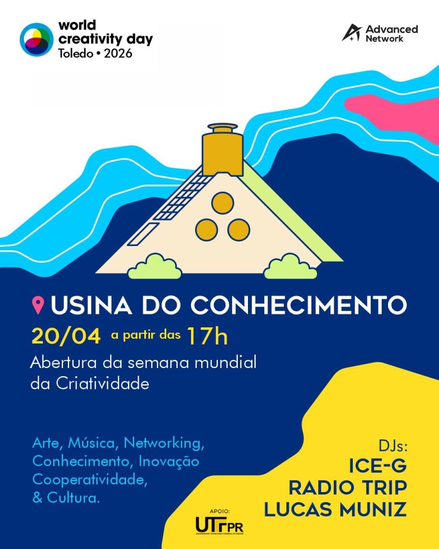 Toledo recebe nesta segunda-feira (20) a abertura oficial do World Creativity Day 2026, movimento global que celebra a criatividade como ferramenta de transformação social, econômica e cultural. O lançamento ocorre na Usina do Conhecimento, no Parque Ecológico Diva Paim Barth (Lago Municipal), a partir das 17h00, com entrada gratuita, reunindo uma programação artística diversificada, incluindo música, exposições, intervenções e roda de conversa.