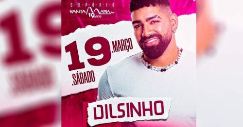 O evento acontece neste sábado (19) a partir das 22h00. DILSINHO é um artista que possui um talento indiscutível, ele é pagode, pop, é samba, romântico e com uma voz incrivelmente linda e doce!