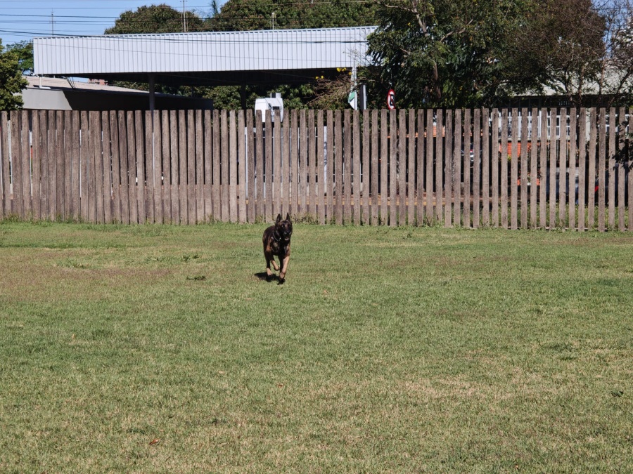 Durante visita ao canil do 19º Batalhão de Polícia Militar de Toledo (19º BPM), o soldado Augusto explicou a rotina e a importância do trabalho realizado com cães policiais. A equipe é formada por três policiais e atualmente conta com três cães: dois já aptos para operações e um em fase inicial de treinamento.