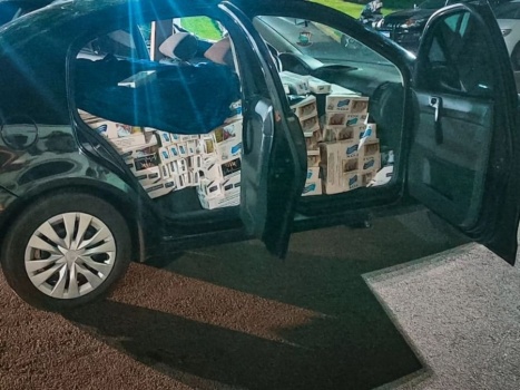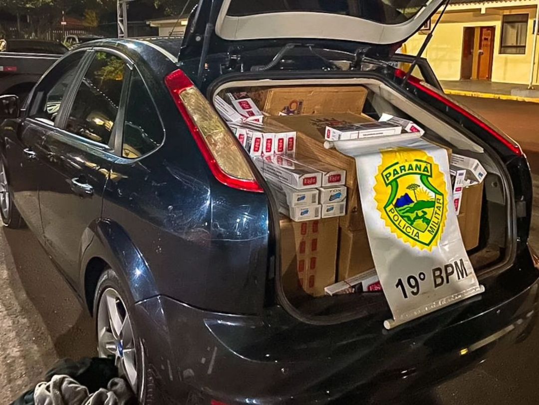 A Polícia Militar (PM) de Toledo apreendeu um total de 2 mil pacotes de cigarros contrabandeados em duas ações em sequência, na noite de segunda-feira, 11. Duas pessoas foram presas.