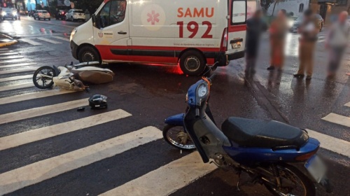 Um adolescente e um homem adulto ficaram feridos em um acidente de motocicleta no início da noite desta segunda-feira (24) no Centro de Toledo. A batida aconteceu no cruzamento da Rua Piratini com a Rua Almirante Barroso.