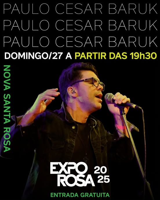 Reconhecido como um dos maiores nomes da música cristã contemporânea, o cantor promete um momento especial de fé, música e emoção, encerrando a Expo Rosa com chave de ouro.