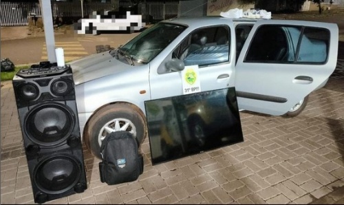 No interior do veículo, os policiais encontraram diversos itens roubados, incluindo um televisor e um aparelho de som. Os dois foram presos e encaminhados à Delegacia de Polícia de Nova Aurora-PR, juntamente com os objetos recuperados.