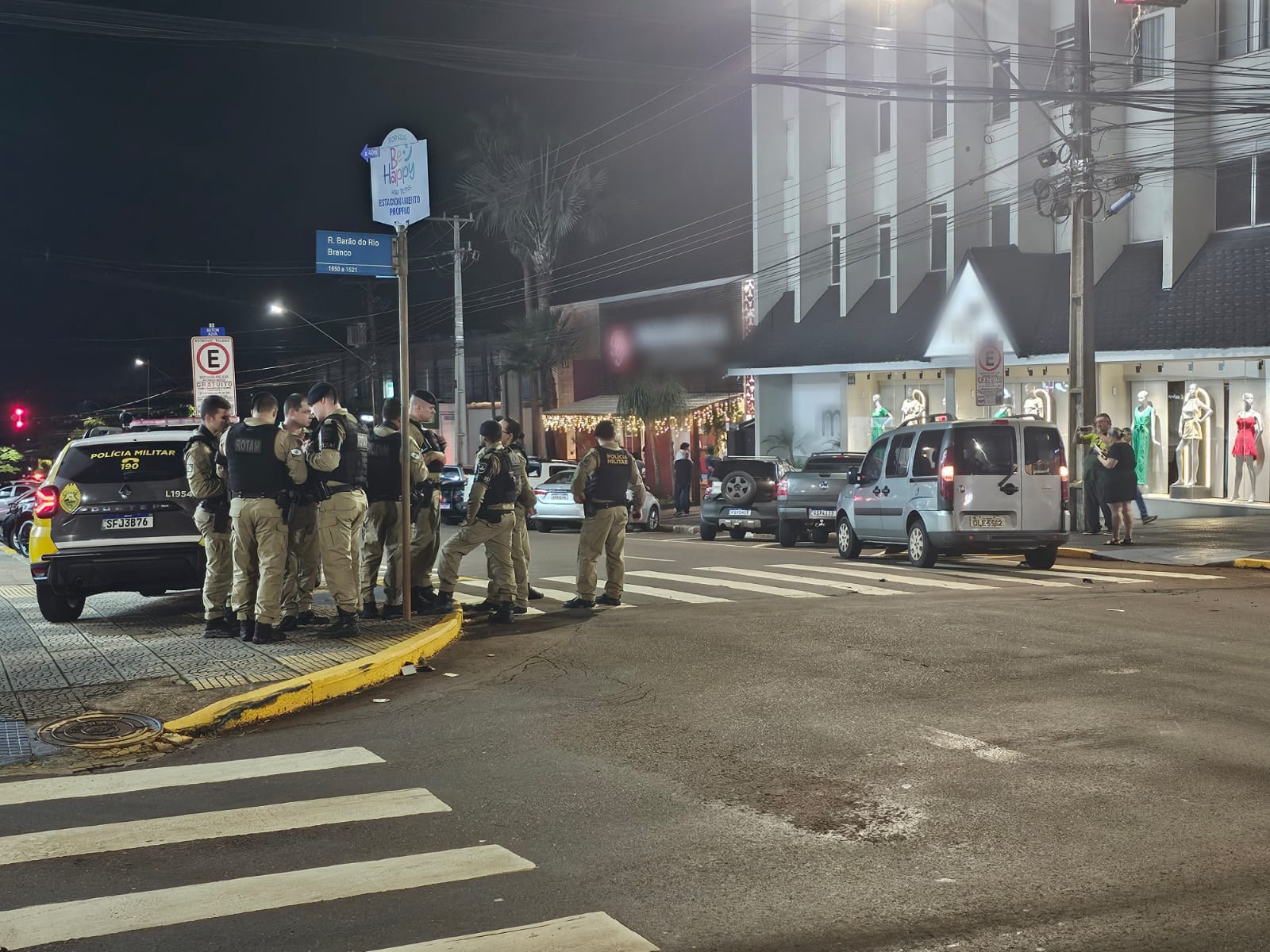 A Polícia Militar foi acionada e rapidamente chegou ao local. Ferido, o condutor da moto não conseguiu fugir para longe e foi encontrado caído a poucos metros do local do acidente. Já o passageiro foi detido pela PM na Rua XV de Novembro, sendo encontrado com ele um revólver calibre .38 municiado.