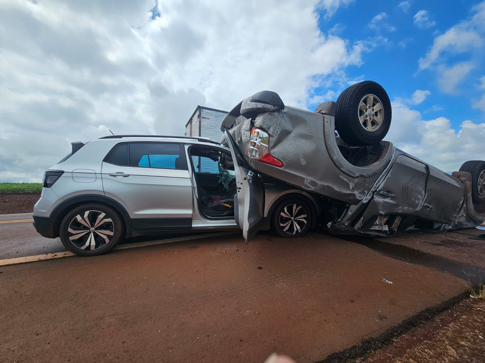 Três pessoas estavam no T-Cross. Duas saíram ilesas, enquanto um idoso de 79 anos sofreu ferimentos leves e foi encaminhado a um dos hospitais de Toledo para exames. O resgate envolveu equipes do Corpo de Bombeiros, do Serviço de Atendimento Móvel de Urgência (Samu) e o helicóptero do Consórcio Intermunicipal de Saúde dos Municípios do Oeste do Paraná (Consamu), além do apoio do Núcleo de Operações Especiais de Fronteira (NOE-Fron), que recolheu a droga espalhada na rodovia.