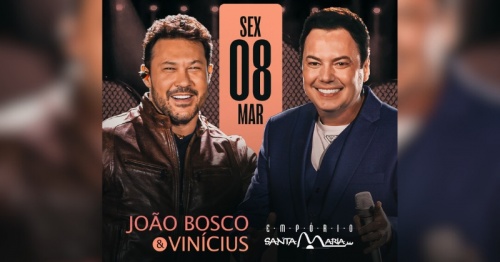 É nesta sexta! Empório Santa Maria de Toledo recebe a dupla sertaneja João Bosco e Vinícius; garanta seu lugar aqui