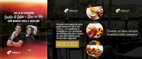 Neste domingo, dia 16 de fevereiro, o Estações Bistrô prepara uma noite especial para quem gosta do clima descontraído de boteco. O evento contará com petiscos à vontade e música ao vivo com Marcos Paulo & Merliane, criando o ambiente ideal para aproveitar bons momentos.