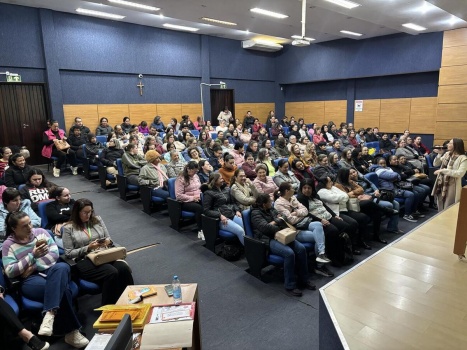 Nesta terça-feira (12), o Auditório Acary Oliveira ficou lotado para a realização do terceiro módulo da formação continuada da alimentação escolar. O evento foi destinado para os servidores responsáveis pela merenda nas cozinhas das escolas e centros municipais de educação infantil (Cmei’s) de Toledo e abordou temas fundamentais para o cuidado e a proteção no ambiente escolar.