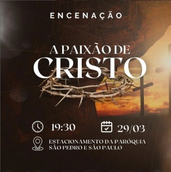 Considerada o ápice da nossa salvação, a encenação da Paixão de Cristo vai além de uma simples peça teatral, sendo, na verdade, uma proclamação do Evangelho. Cerca de 40 artistas participarão da encenação, que espera receber pessoas das áreas da Vila Boa Esperança, Vila Pioneiro, Vila Paulista, Centro, Vila Operária e Jardim Maracanã. Não é necessário reservar lugares, pois o evento é aberto a todos, iniciando-se às 19h30 com a benção do Padre Luiz Carlos Franzener.