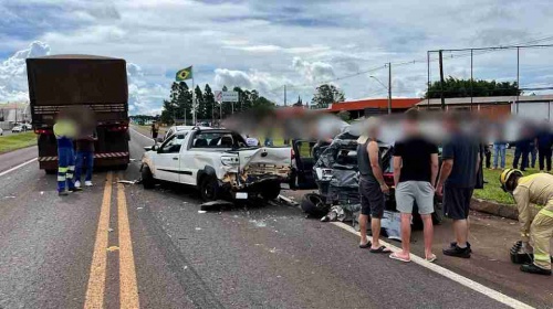 Acidente entre seis carros e caminhão ocorreu na tarde desta terça-feira (23) na BR-277, no Trevo Guarujá, em Cascavel.